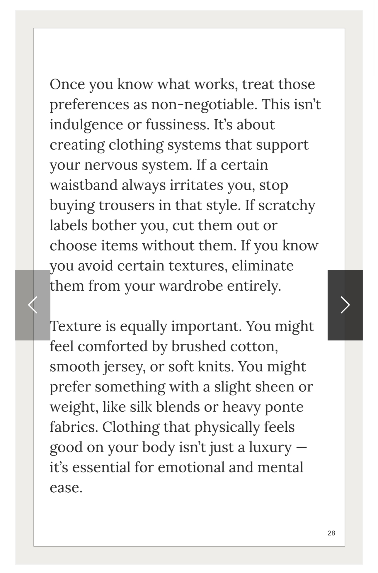 This isn’t another guide telling you to “dress your body type” or “add a pop of colour.” This is a neurodivergent-friendly approach that respects how sensitive minds and bodies actually engage with clothing.