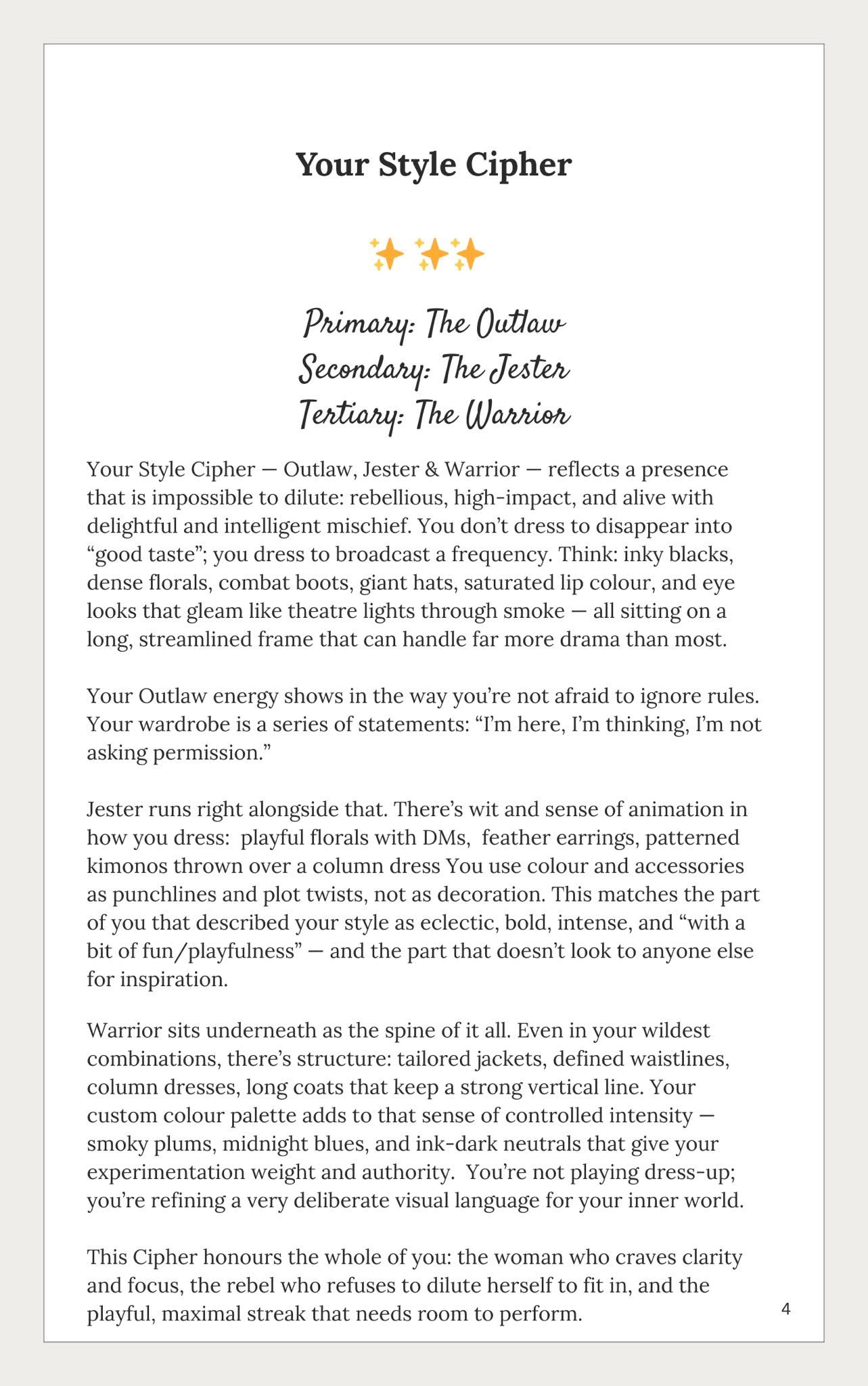 • Your Style Energy Archetypes — primary, secondary & tertiary.. These reveal how you naturally express, captivate, & embody your presence.