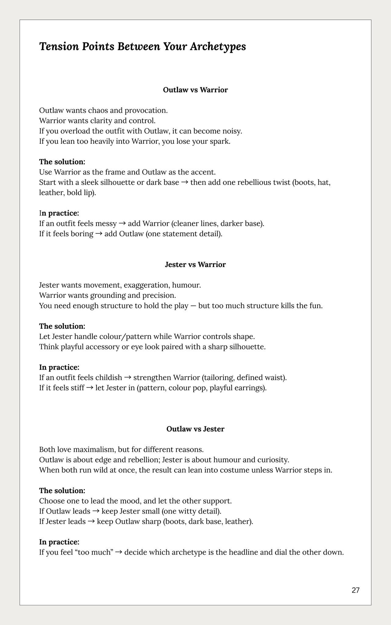 • An editorial-quality 30+ page PDF report offering in-depth insight into your Archetype blend & how to apply it to your wardrobe, and life!