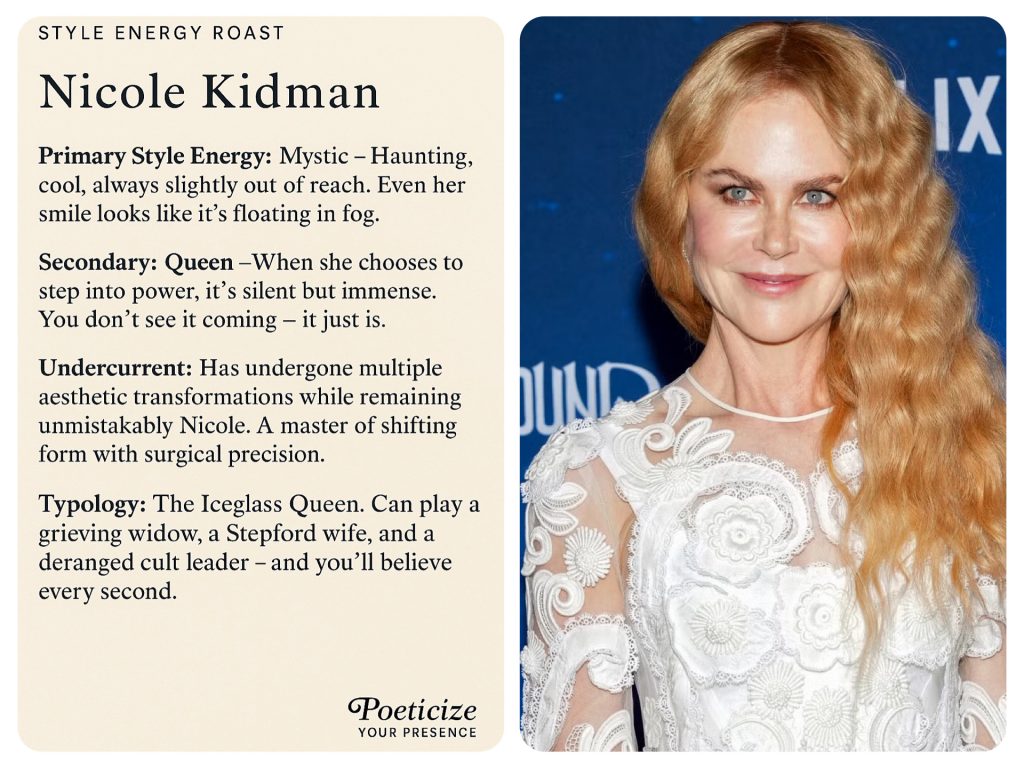 Nicole is extraordinarily elegant. When she steps into power, it’s silent but immense. You don’t see it coming — it just is.